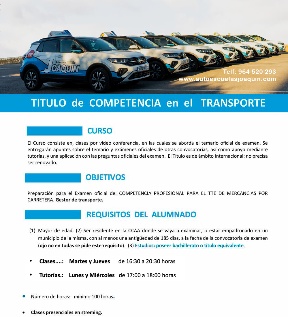 Preparación para el Examen oficial de: COMPETENCIA PROFESIONAL PARA EL TTE DE MERCANCIAS POR CARRETERA. Gestor de Transporte.